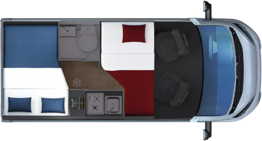 - Cama transversal trasera de 2 plazas