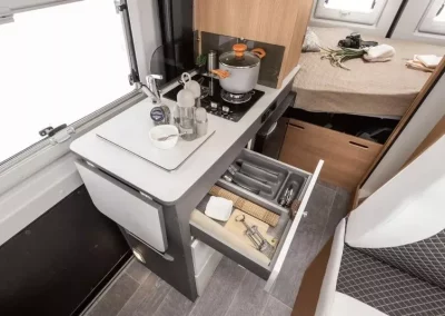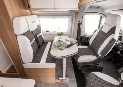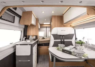 La GiottiVan 54T es la furgoneta ideal para quienes disfrutan de la agilidad sin sacrificar la comodidad esencial. Con 5,41 metros de largo, ofrece una cama trasera transversal , una cocina funcional, un baño compacto y amplios espacios. Perfecta para dos, se conduce como un coche y se vive como una autocaravana. Fiable y versátil, es la opción ideal para viajes cortos, fines de semana o itinerarios de aventura.