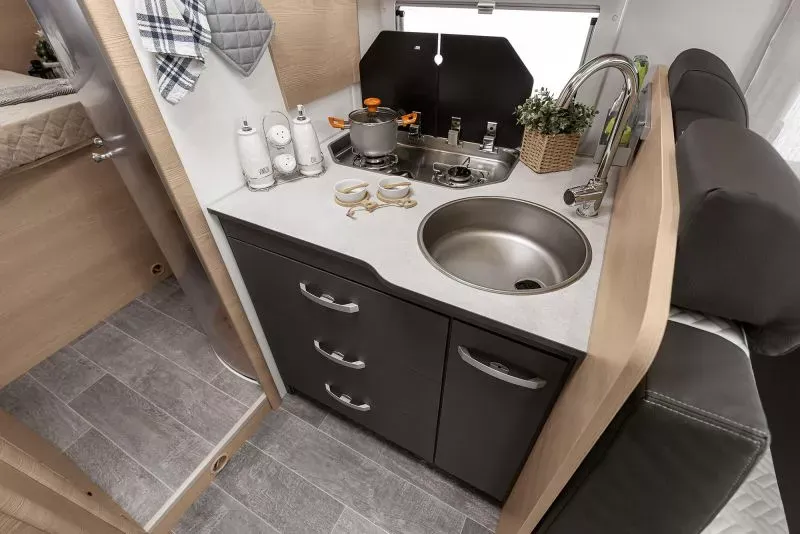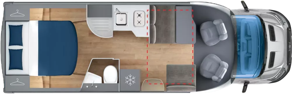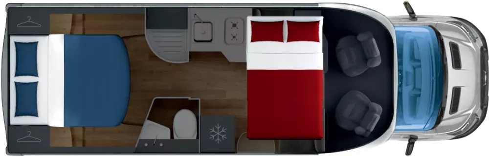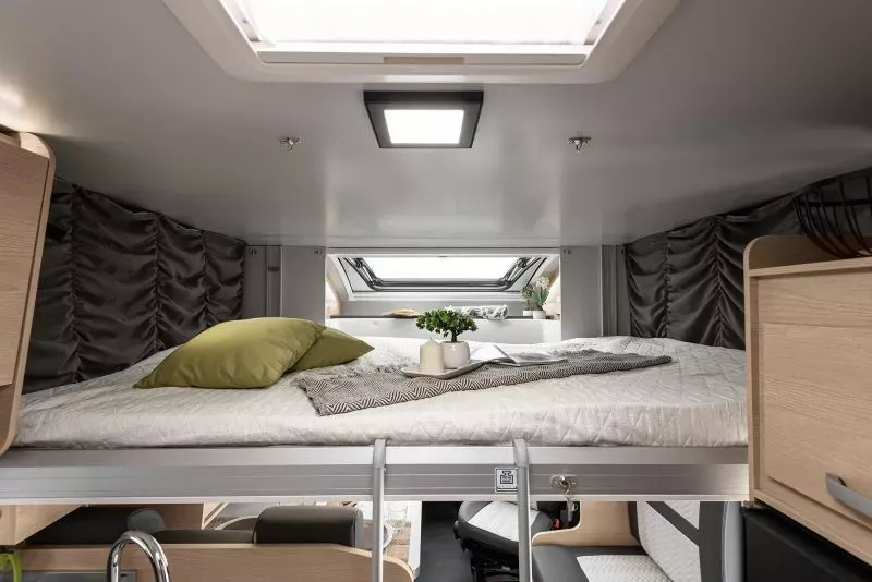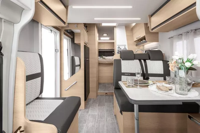 El Siena 390F es ideal para quienes viajan en familia y buscan soluciones inteligentes en un ambiente refinado. Con una longitud de 7,40 metros , ofrece una cama isla de matrimonio , cama delantera eléctrica doble, una cocina amplia y baño con ducha separada. El habitáculo, luminoso y bien organizado, garantiza una experiencia cómoda . Perfecto para viajes cortos o largos, el Siena 390F está disponible con base Ford , con todo lo necesario para moverse con libertad, sin sacrificar la comodidad.