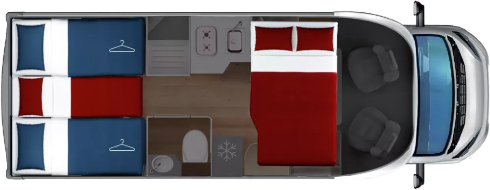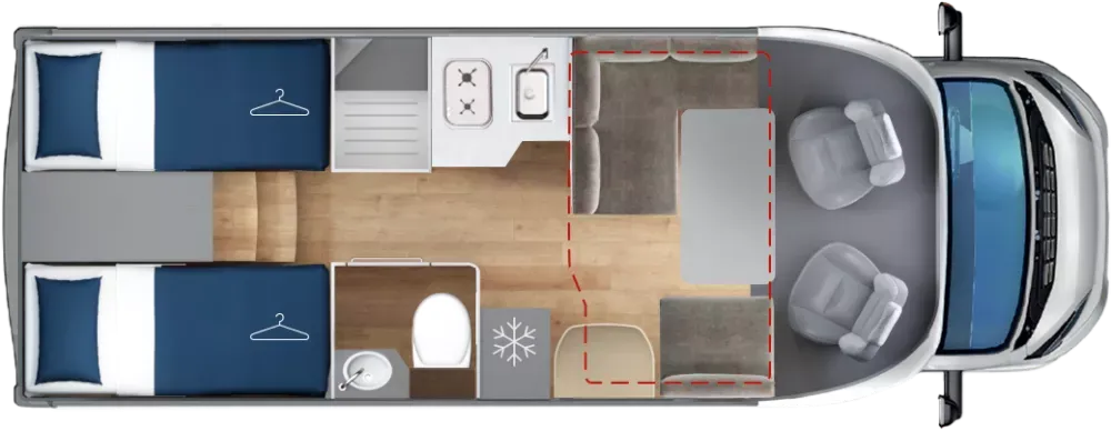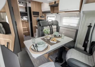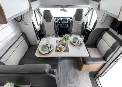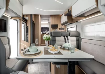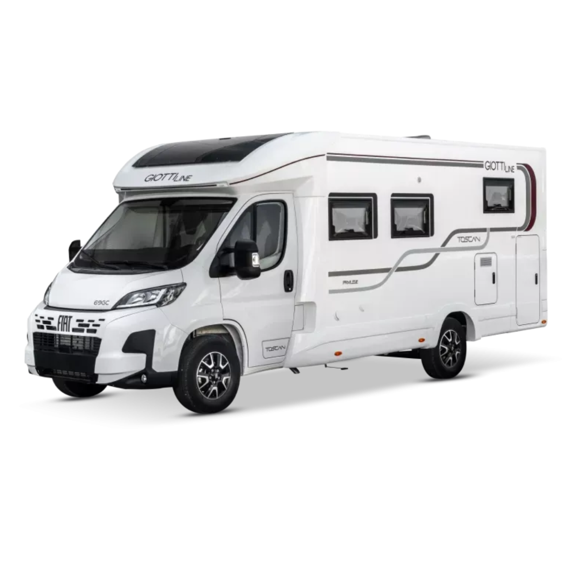 La Toscan 69GC es una autocaravana semiintegrada de 6,99 metros , con dos camas traseras , un baño completo con ducha independiente y una moderna y luminosa sala de estar. El comedor convertible y la cama abatible opcional ofrecen flexibilidad para todas las necesidades. Los espacios están optimizados para garantizar la máxima comodidad incluso en viajes largos. Construida sobre una base Citroën o Peugeot y Fiat , la Toscan 69GC combina líneas elegantes con una gran habitabilidad.