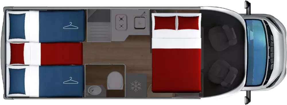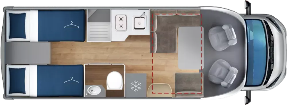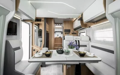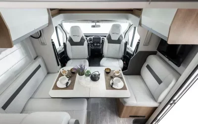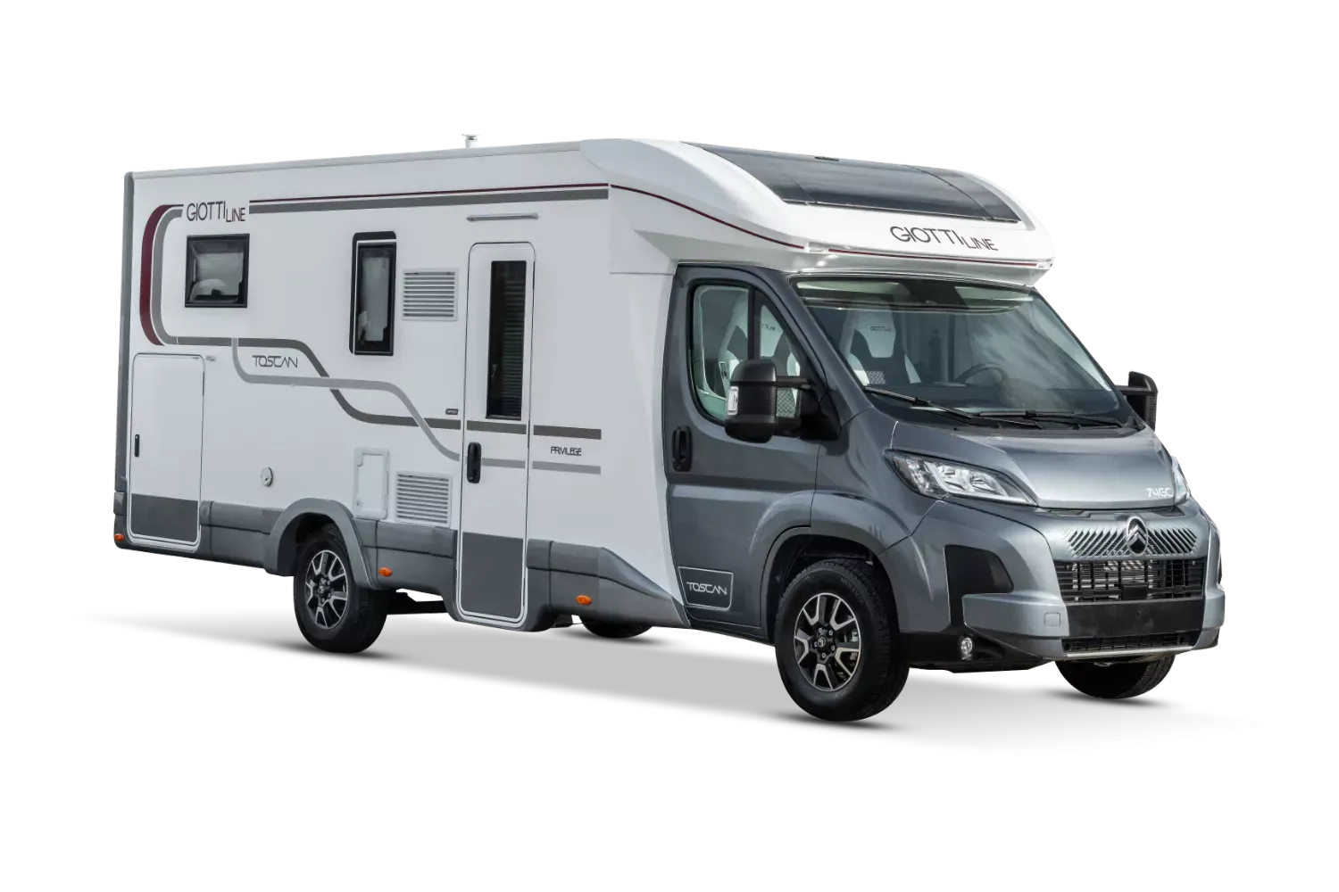 La Toscan 74GC es un semi-integrado espacioso y versátil de 7,40 metros de largo, con dos camas traseras , baño completo y ducha independiente. Su luminoso salón, la dinette transformable y la cama abatible opcional lo hacen ideal para grupos grandes o viajes largos. Equipado con mecánica Citroën o Peugeot y Fiat , combina habitabilidad y confort en un estilo sobrio y contemporáneo.